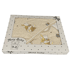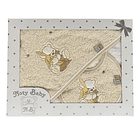 - Toalha com 80 x 75 cm, para envolver todo o bebé após o banho